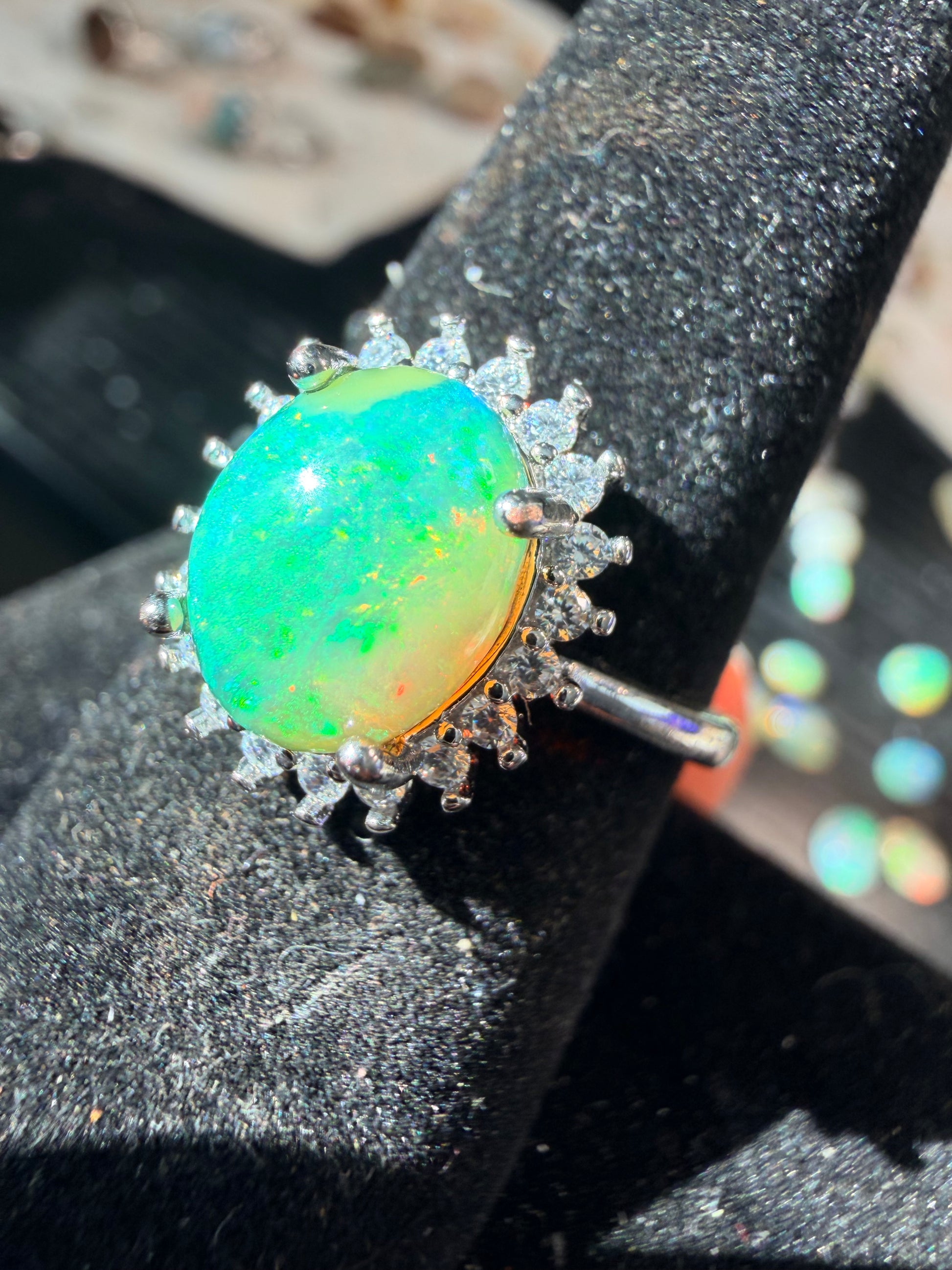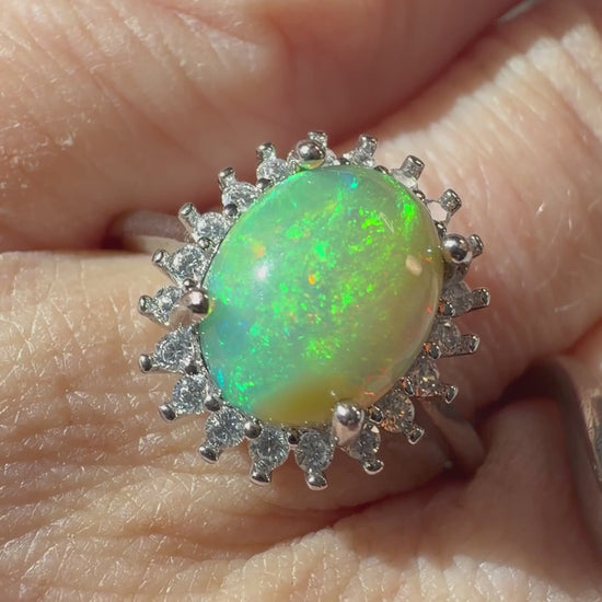 1.7 carat Ethiopian opal adjustable ring 925 silver setting