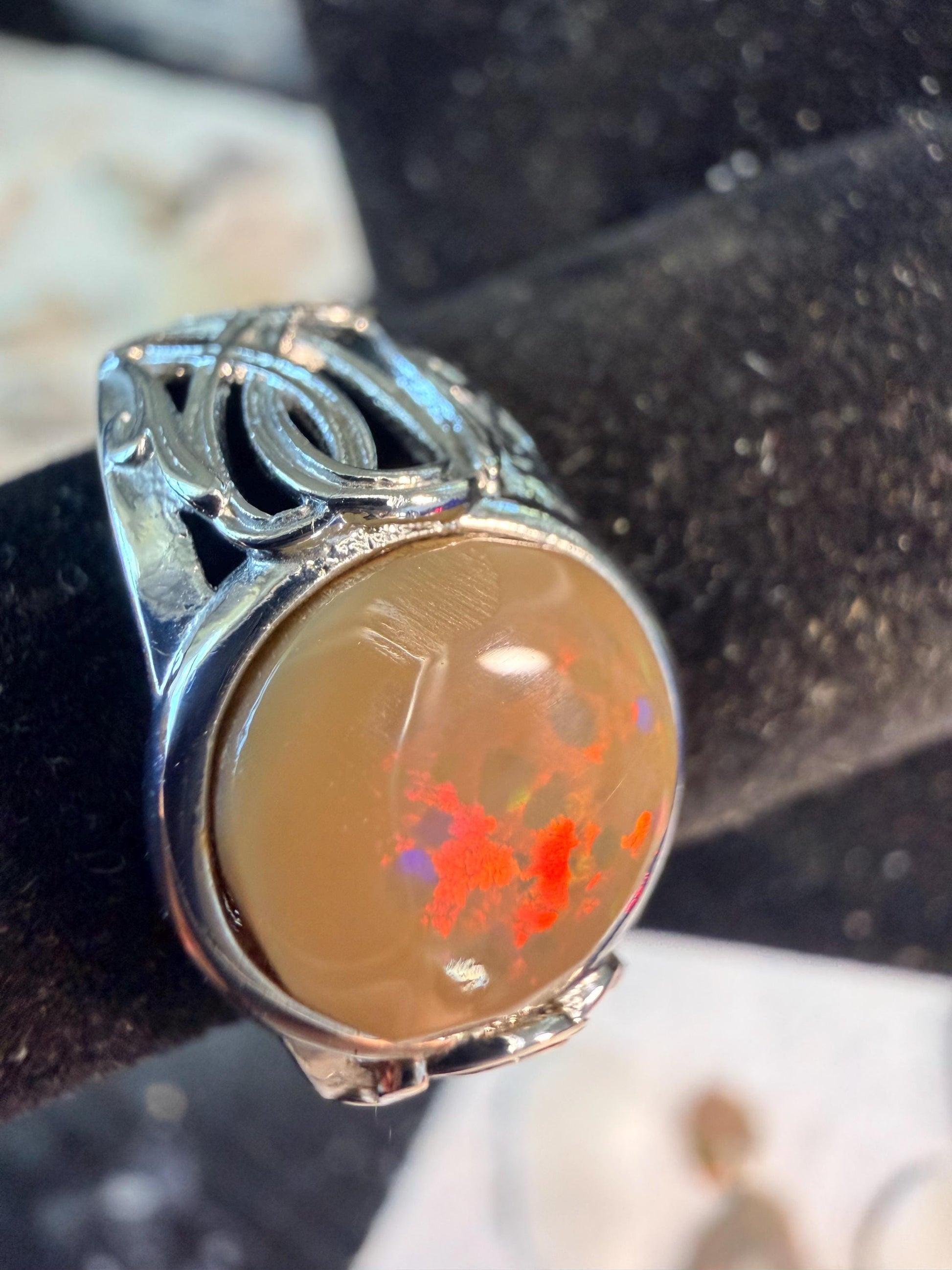 2.2 carat Ethiopian opal chocolate adjustable ring