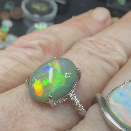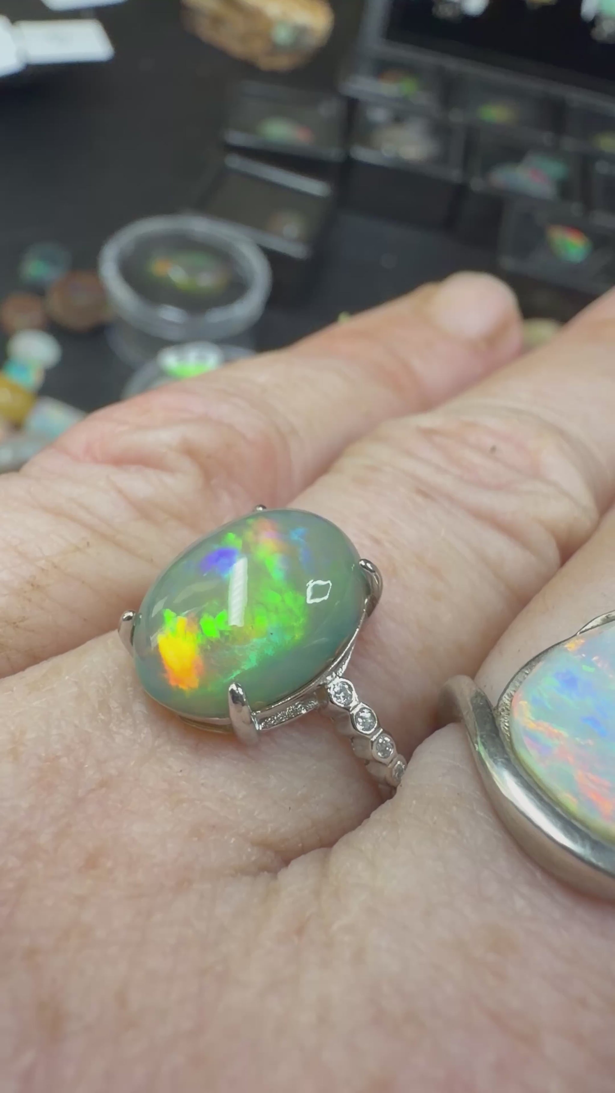 2.8 carat all natural Ethiopian opal adjustable ring with honeycomb pattern