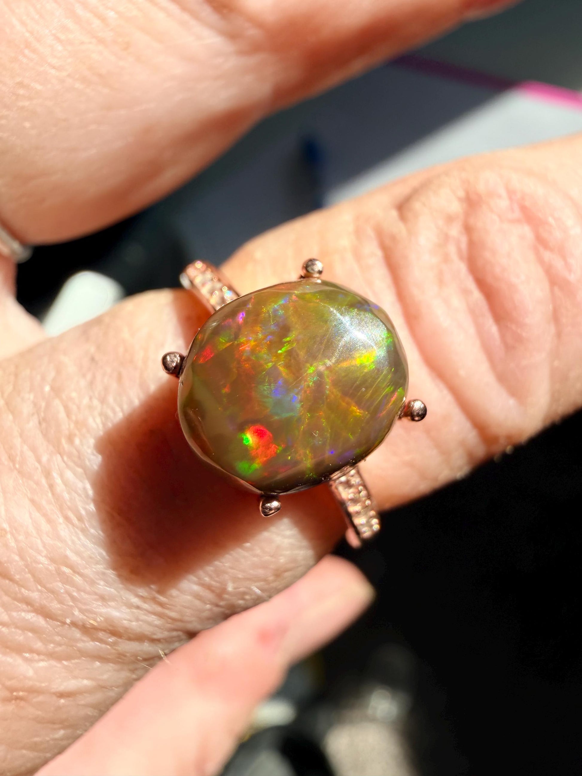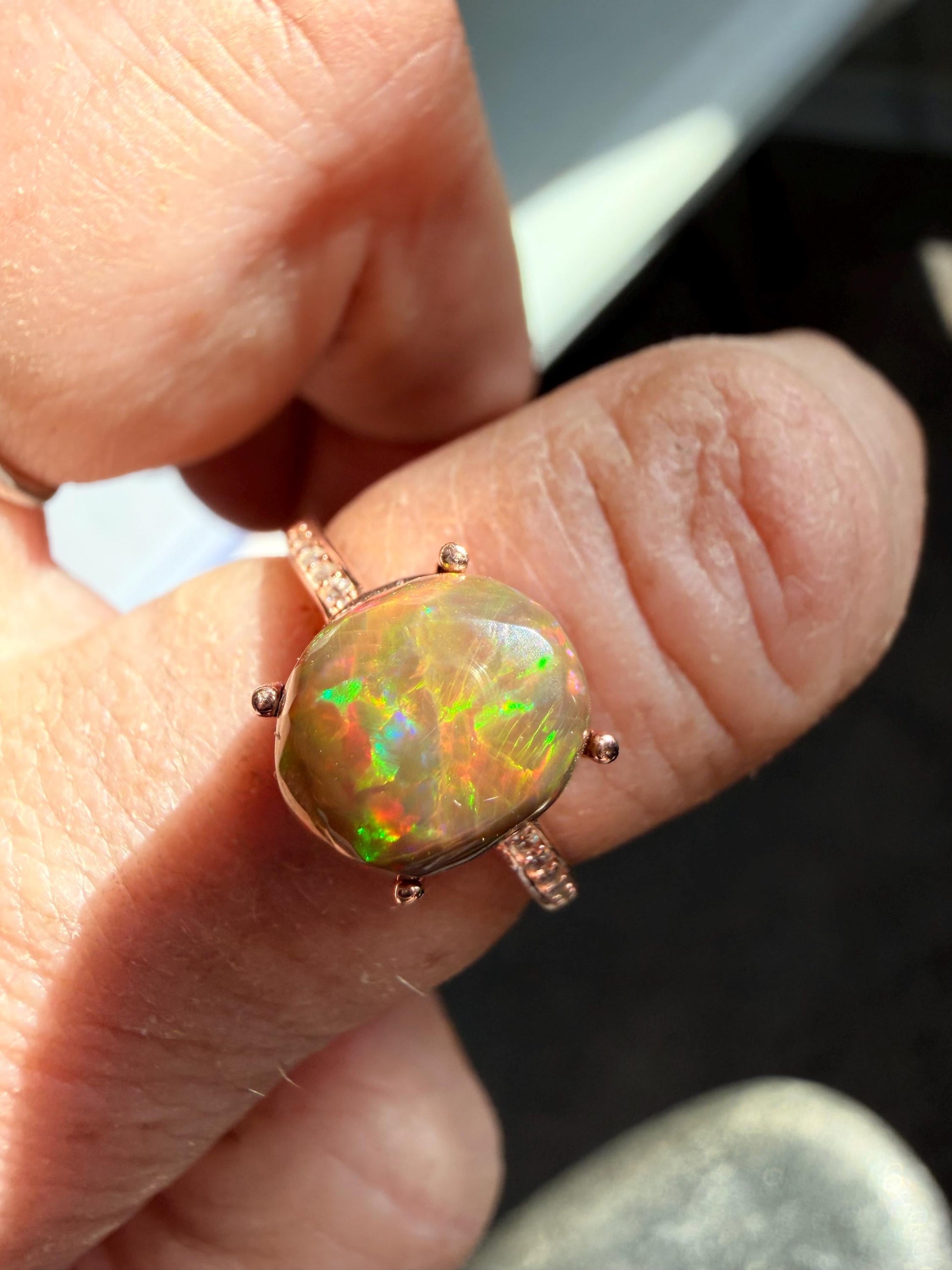2.8 carat Ethiopian opal rose gold adjustable ring