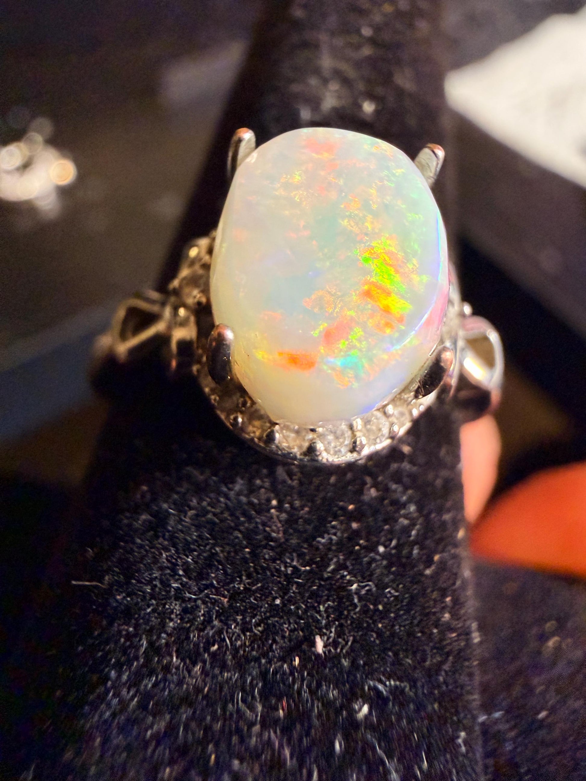 2 carat Australian opal set in a silver adjustable ring. Reminder, I'm not a jeweler and these rings were originally made for just me. I prefer the stones natural looking with possible matrix, inclusions or some polishing scratches. These are all created from rough rocks that I grind and polish into cabs.